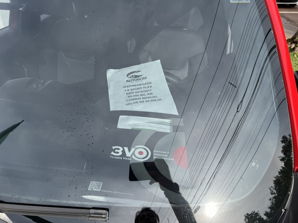 Jeep Renegade 1.8 flex modelo Sport completo ano. 2016/2017 com câmbio manual de 5 marchas, manual do proprietário chave reserva e laudo aprovado com certificado, apenas 89 mil quilômetros Freios ABS, Airbags Frontais, Travamento central das portas, Ar-condicionado, multimídia, freio de mão elétrico, start stop liga e desliga no semáforo rodas esportivas com 4 pneus novos, controle de som no volante, vidros elétricos nas quatro portas e sensor de estacionamento.